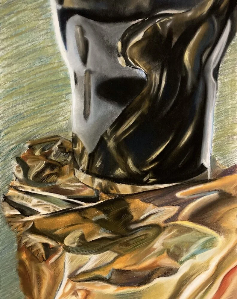 I arranged a still life consisting of a metallic, navy blue mug and an orange wrapper for this color study. I focused on the colorful interactions between these two objects, creating movement and liveliness.